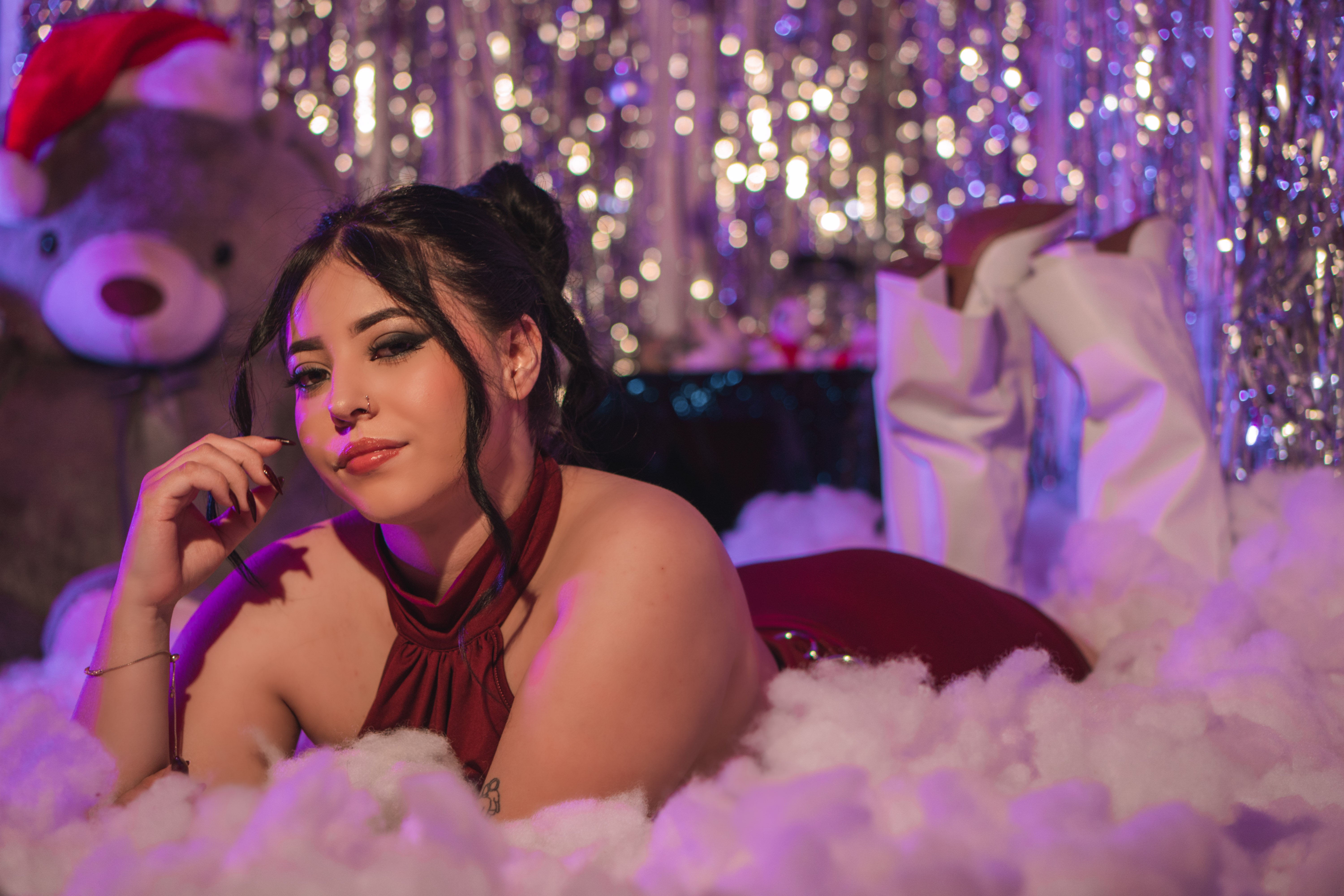 Surrounded by soft lights and shimmering dreams, I sit wrapped in confidence and quiet allure. Smooth curves, slow movements, and a gaze that knows exactly what it wants. This moment is playful, powerful, and irresistibly inviting… are you ready to give in to the temptation? 💋💫